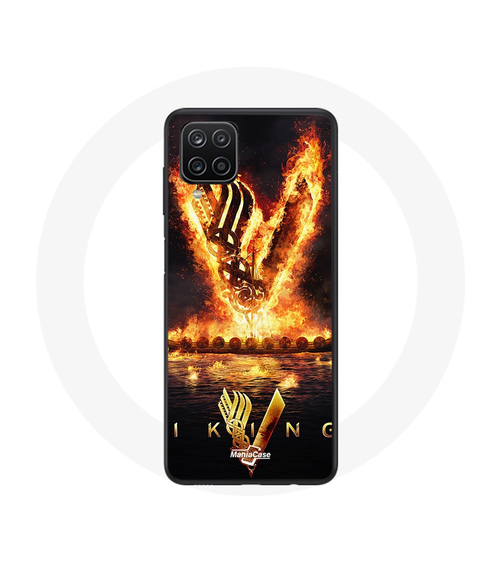 Coque pour Samsung Galaxy A42 5G Vikings Série Saison 6 logo V Epée de Feu Fond Noir