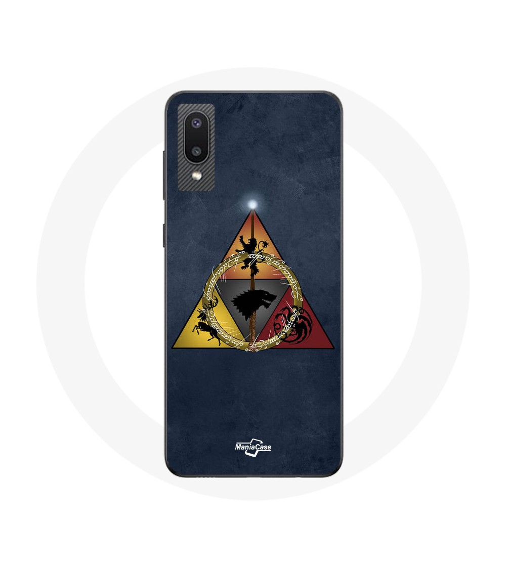 Coque pour Samsung Galaxy A02 Game of Thrones Saison 8 Le Trône de Fer Triangle Logo Baratheon Lannister Stark et Targaryen