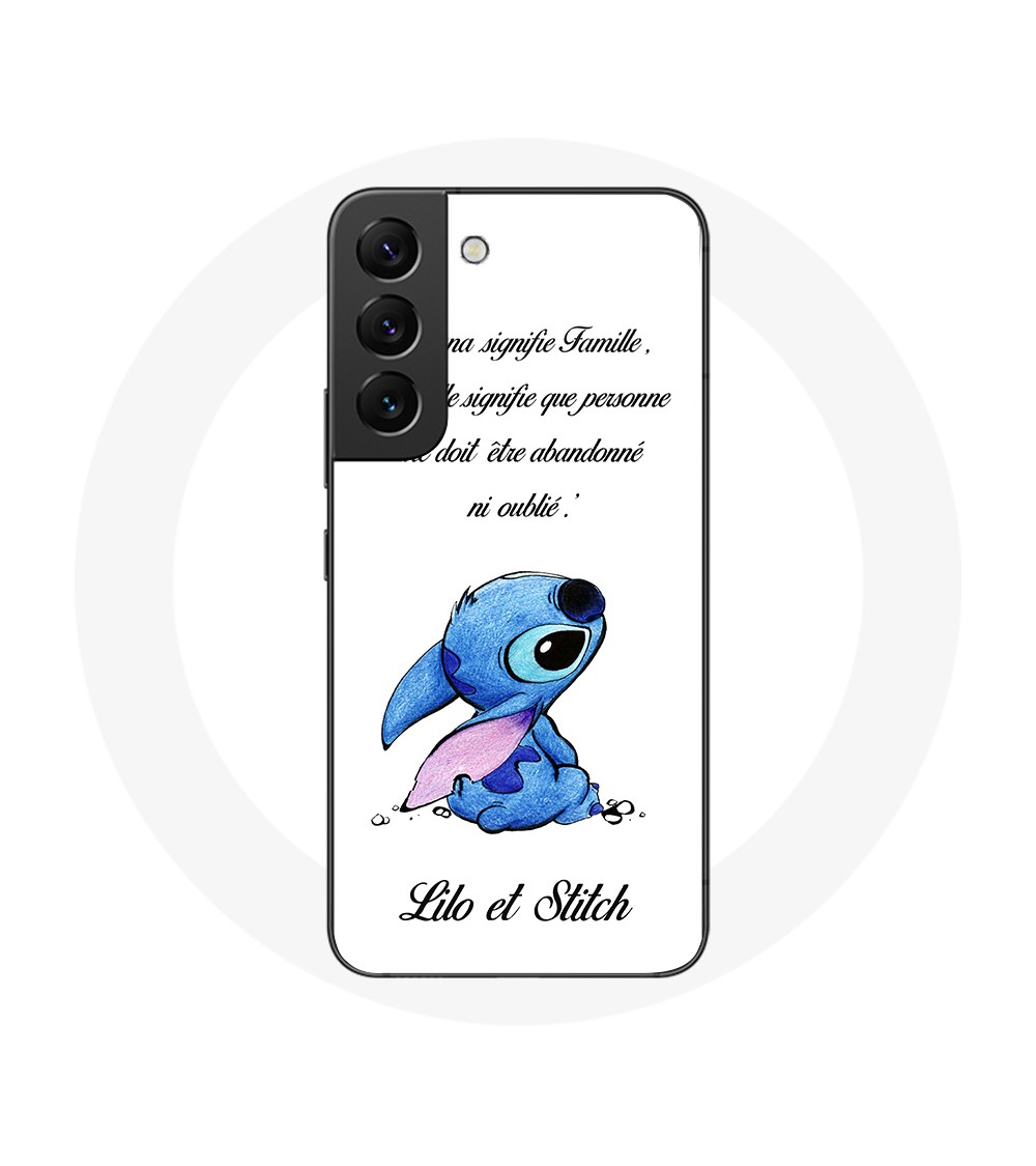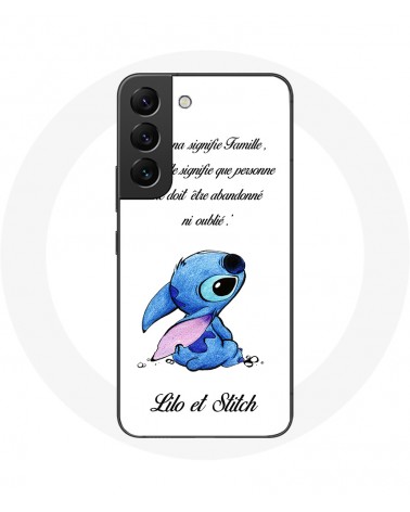 Coque pour Samsung Galaxy S22 Lilo et Stitch Ohana Citation Blanc