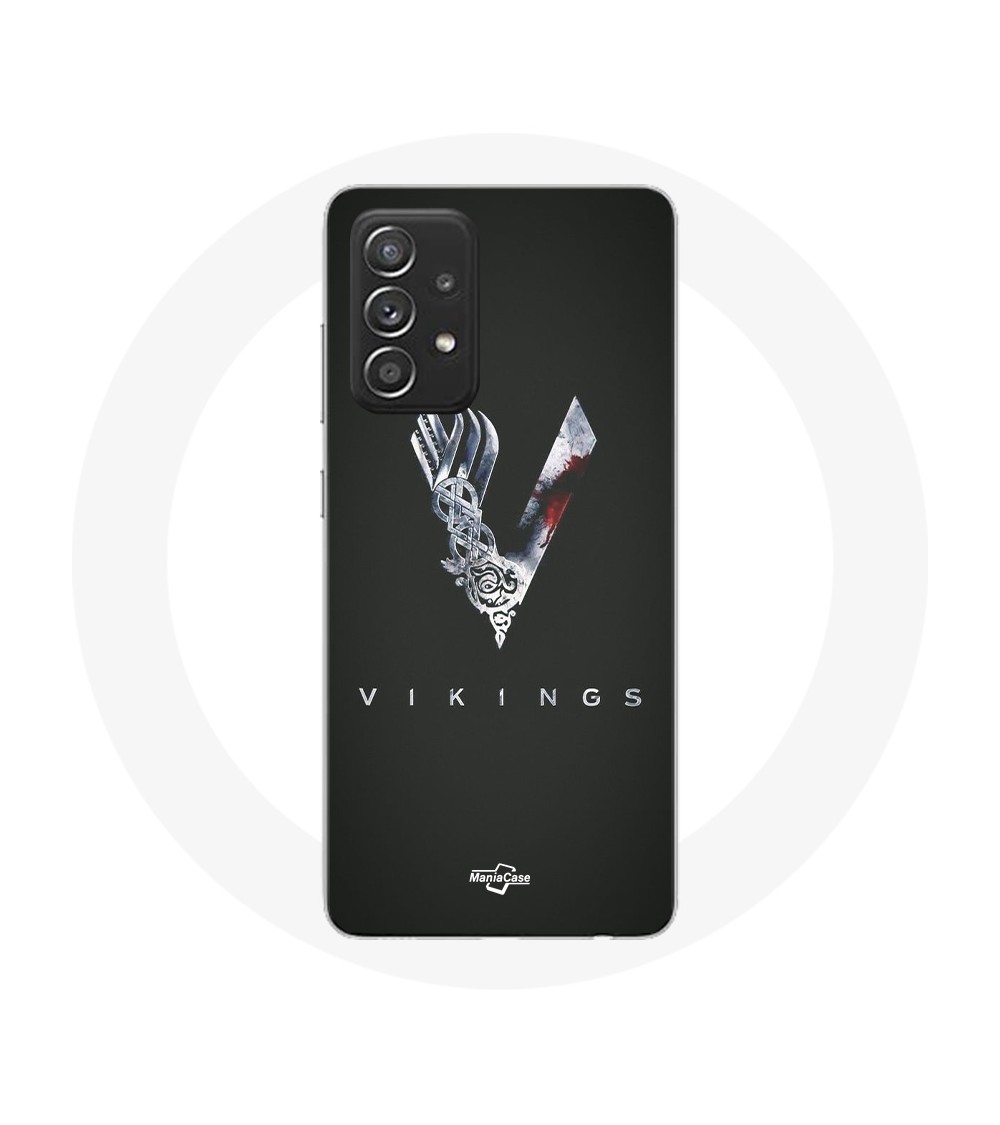 Coque pour Samsung Galaxy A52 Vikings Série Saison 6 logo V Epée Gris Fond Noir