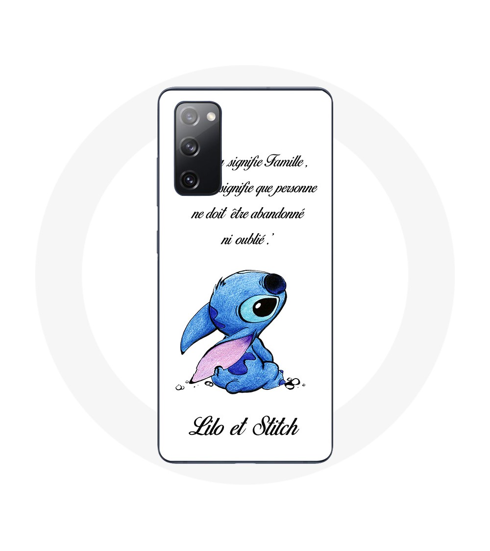 Coque pour Samsung Galaxy S20 FE Lilo et Stitch Ohana Citation Blanc