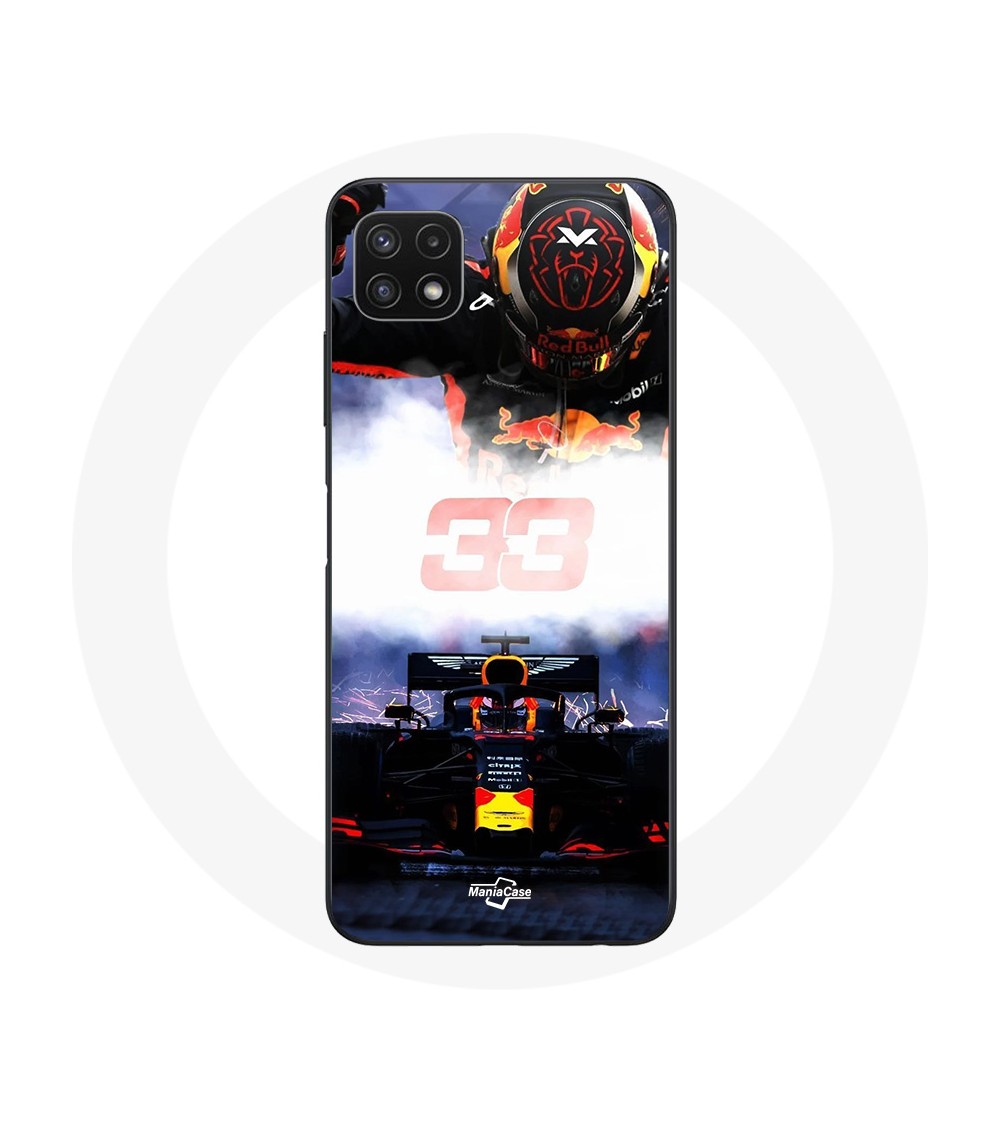 Coque pour Samsung Galaxy A22 5G Formule 1 Max Verstappen Pilote de F1 noir rouge et jaune