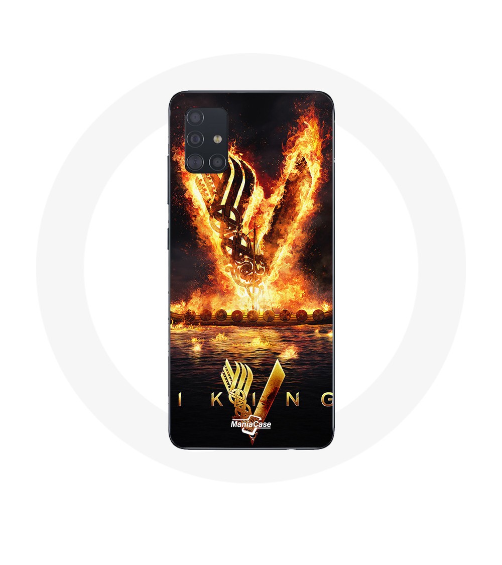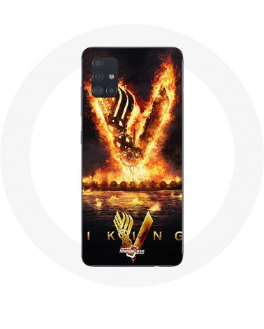 Coque pour Samsung Galaxy A51 5G Vikings Série Saison 6 logo V Epée de Feu Fond Noir