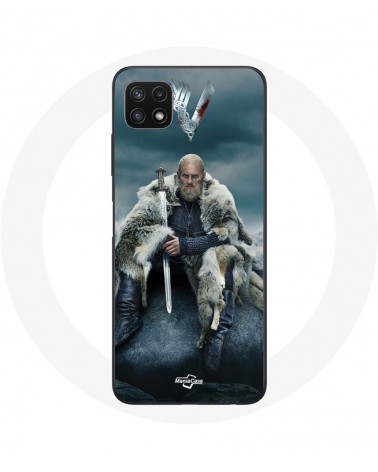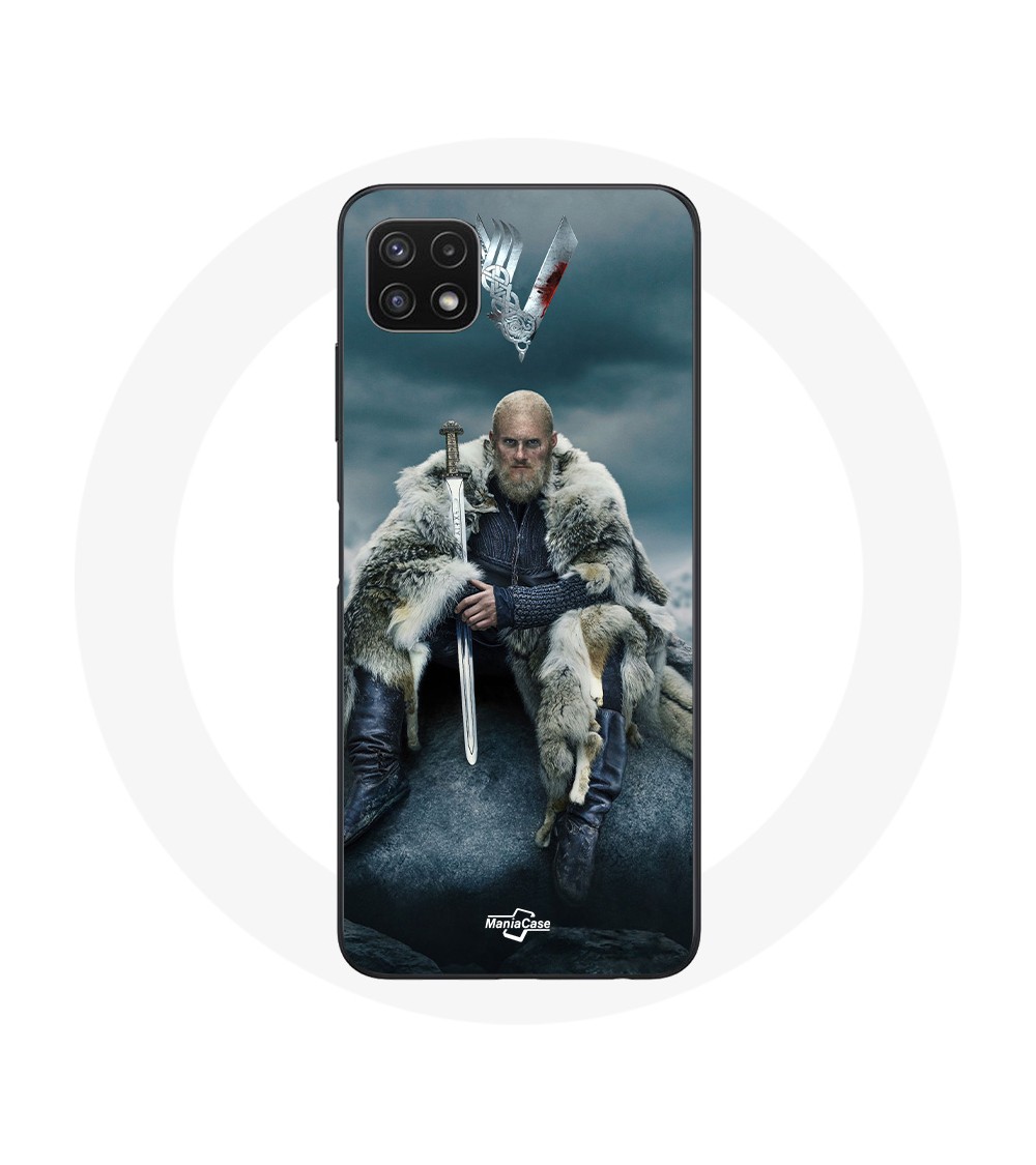 Coque pour Samsung Galaxy A22 5G Vikings Série Saison 6 Ragnar Lothbrok logo V Epée Gris Fond Brouillard