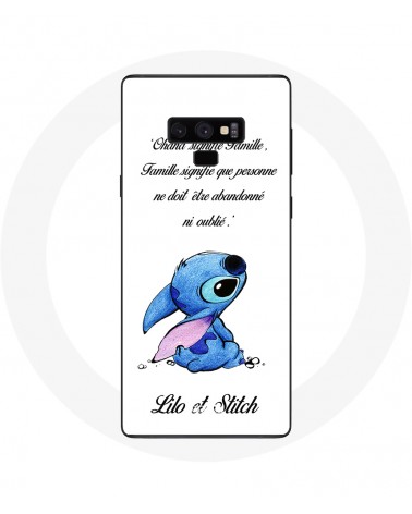 Coque pour Samsung Galaxy Note 9 Lilo et Stitch Ohana Citation Blanc