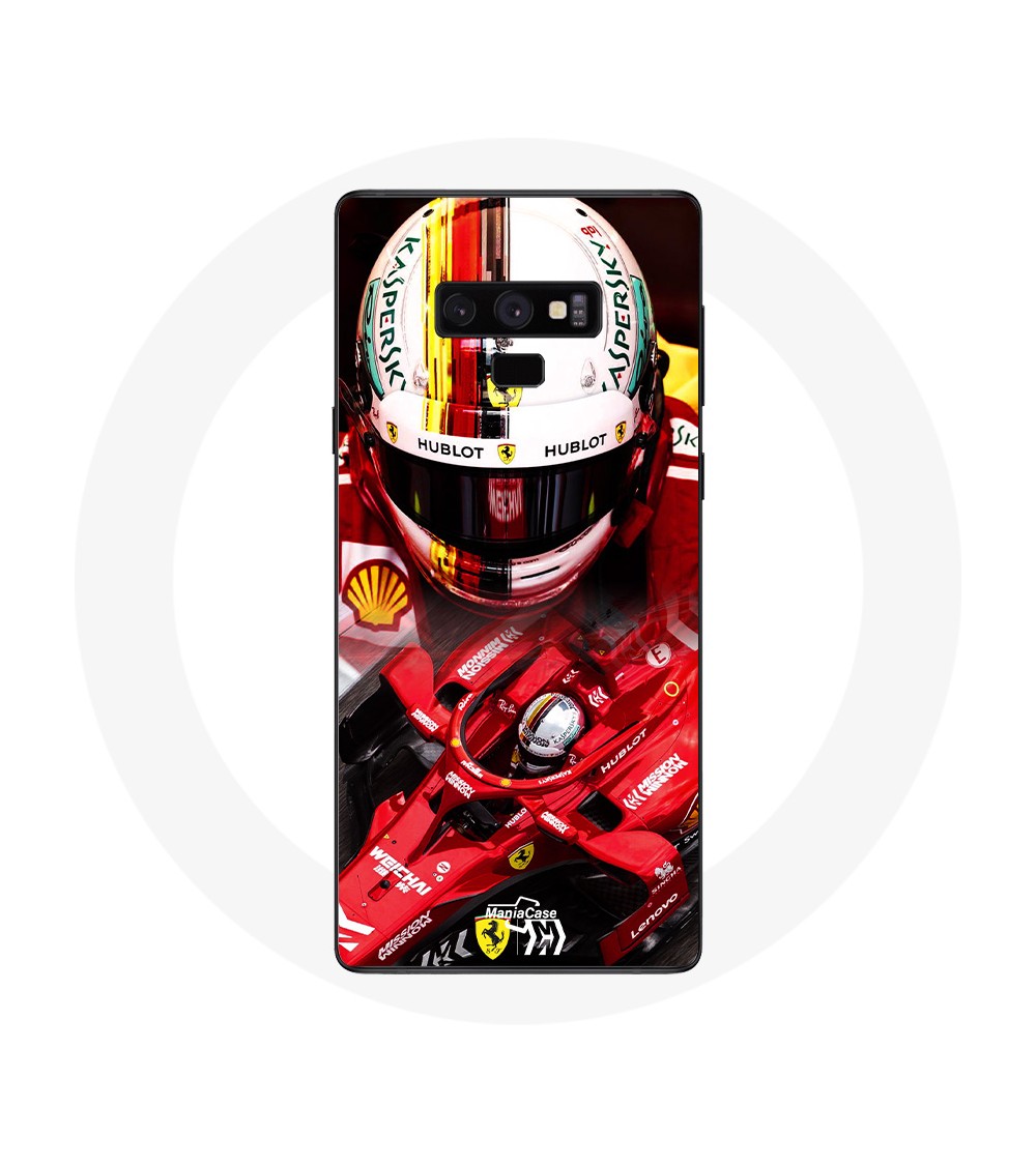 Coque pour Samsung Galaxy Note 9 Formule 1 Sebastian Vettel F1 Rouge