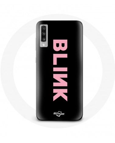 Coque pour Samsung Galaxy A50 Blink Fandom Blackpink Logo Rose Fond Noir