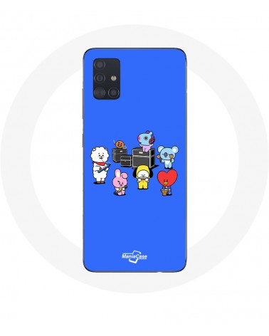 Coque pour Samsung Galaxy A51 4G BTS BT21 Tata Chimmy Cooky Rj Koya Shooky Et Mang Jouent De la musique Fond Bleu