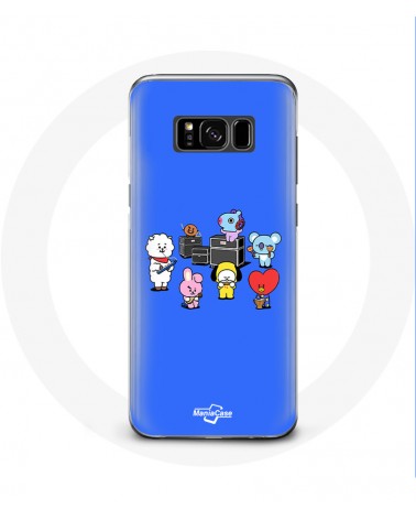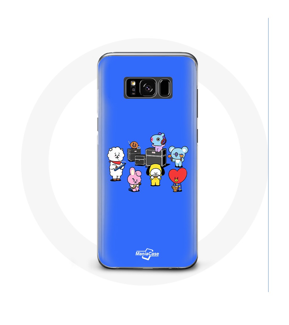 Coque pour Samsung Galaxy S8 BTS BT21 Tata Chimmy Cooky Rj Koya Shooky Et Mang Jouent De la musique Fond Bleu