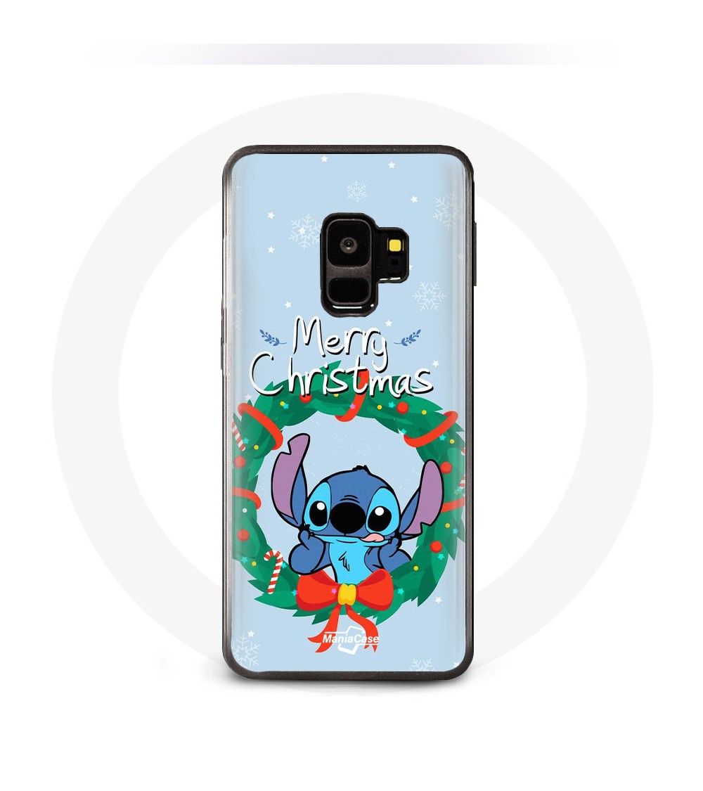Coque pour Samsung Galaxy S9 Stitch neige joyeux Noël bleu