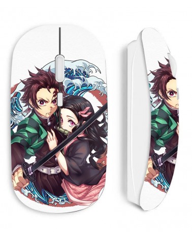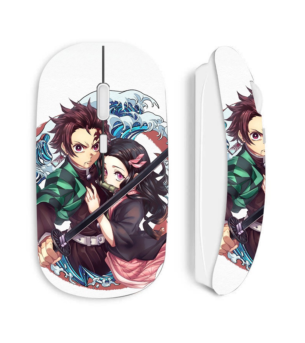Souris blanc Sans Fil Demon Slayer Tanjiro Nezuko brother manga anime, livrée avec clé USB wifi