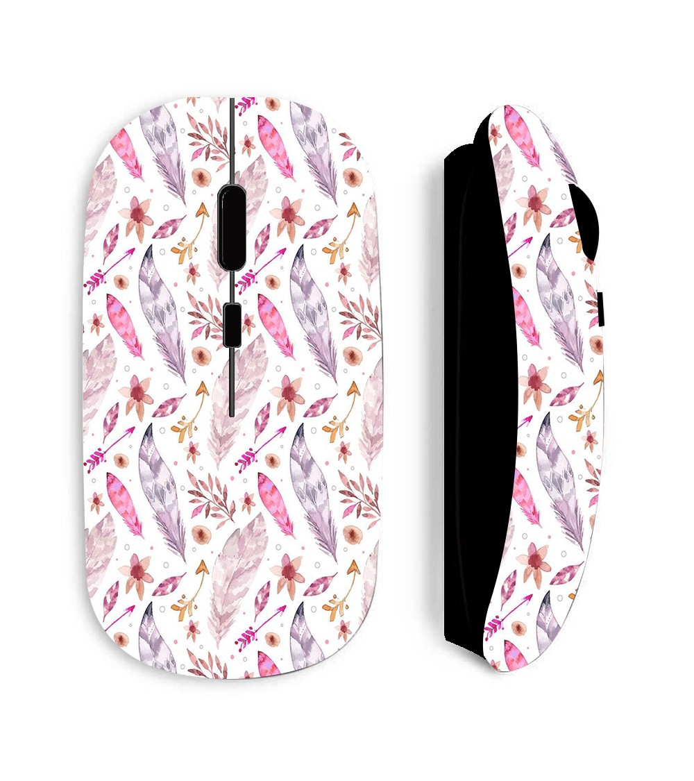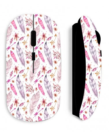 Souris noire Sans Fil Plumes roses, livrée avec clé USB wifi