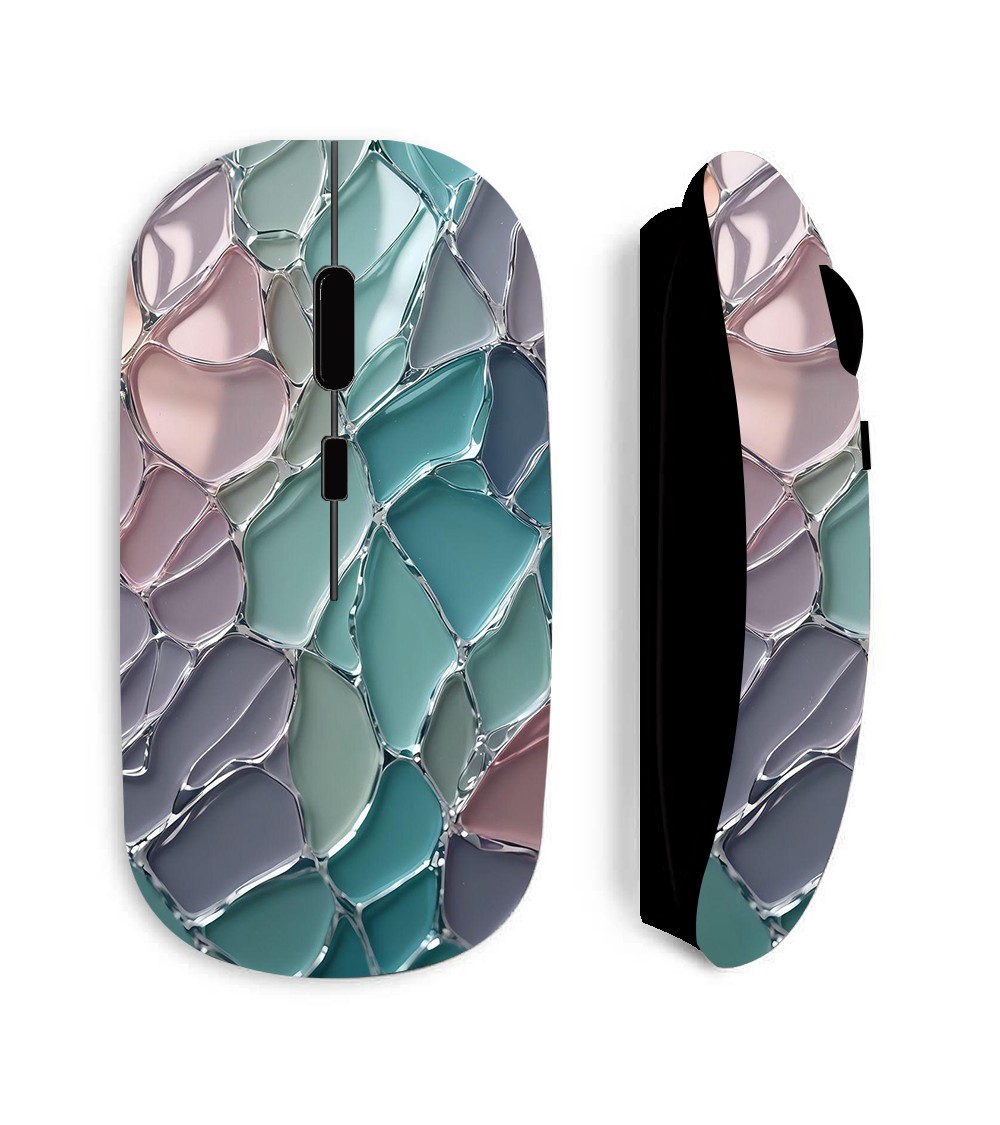 Souris noire Sans Fil texture écailles de verre colorés, livrée avec clé USB wifi