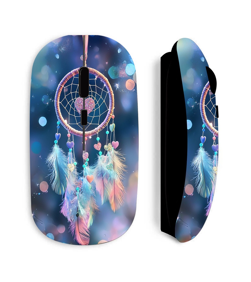 Souris noire Sans Fil Attrape rêve coloré rose et bleu, livrée avec clé USB wifi
